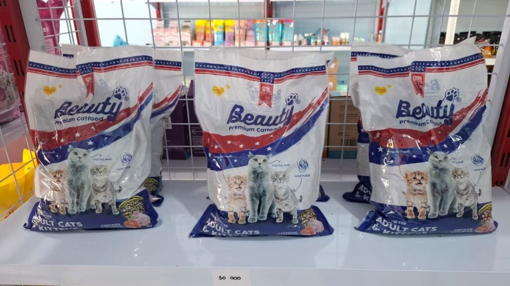 Pakan, pasir, vitamin & aksesoris kucing lengkap.