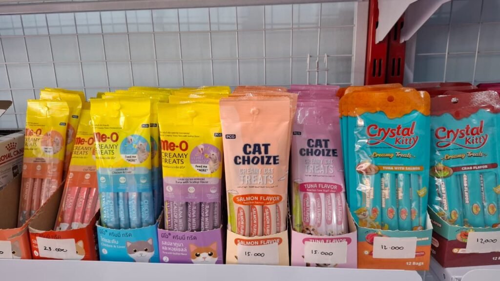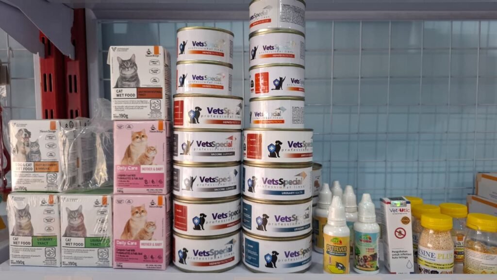 Pakan dry & wet, snack, pasir, vitamin, hingga aksesoris tersedia.